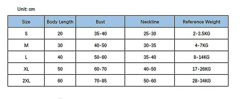 Taille: S, M, L, XL, XXL < BR >< > Taille du produit: Unité cm (le poids de référence est à titre indicatif uniquement, pas en standard, il est principalement basé sur la mesure des mesures des animaux de compagnie avant l’achat)