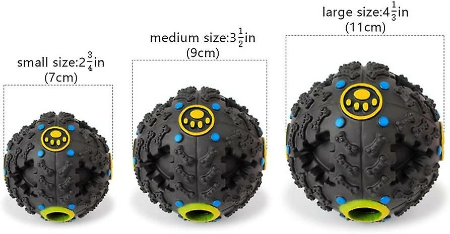 MATERIAL & SIZE: Made of natural rubber, bite-resistant and non-toxic. Diameter: small 2.7″, medium 3.7″, large 4.7″. EASY TO USE: Load crushed dry food or snacks into the ball, demonstrating pets the action of food falling out of a rolling ball, interest will be generated once the pet knows that rolling ball food will fall out of the ball. SQUEAKY FUN: Inner squeaker can increase dogs interest and helps dog keep away from boredom. No need to squeeze, when rolls the ball, it will make different and unique squeak. TEETH CLEANING: When playing, this toy ball can clean teeth and massage gums at the same time as a toothbrush, it can solve the pet casually bite desire. WARM TIPS: If your puppy dog was first time to play this style ball toy, you maybe need play with them first, let them know what is it, so they will not afraid and will play happy.