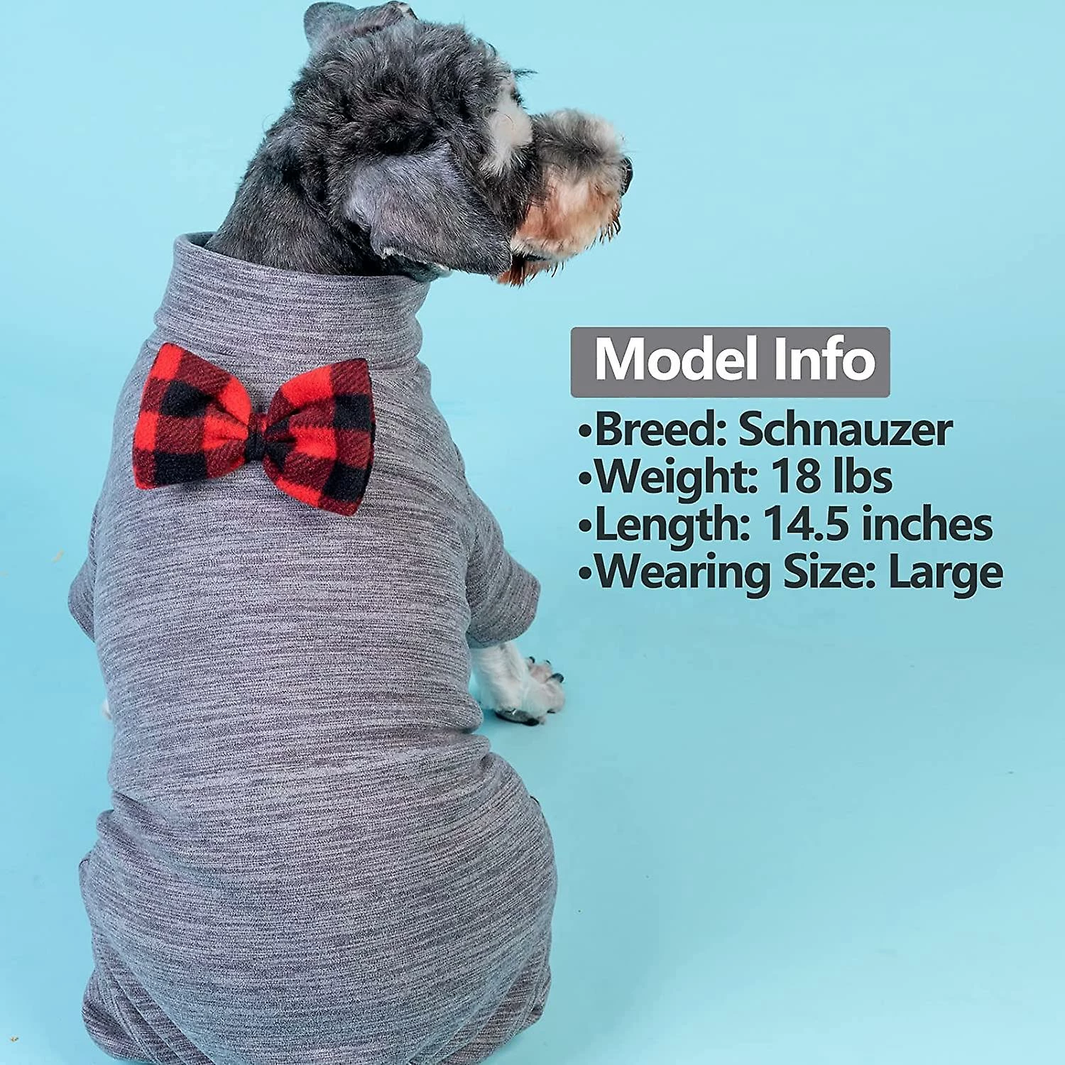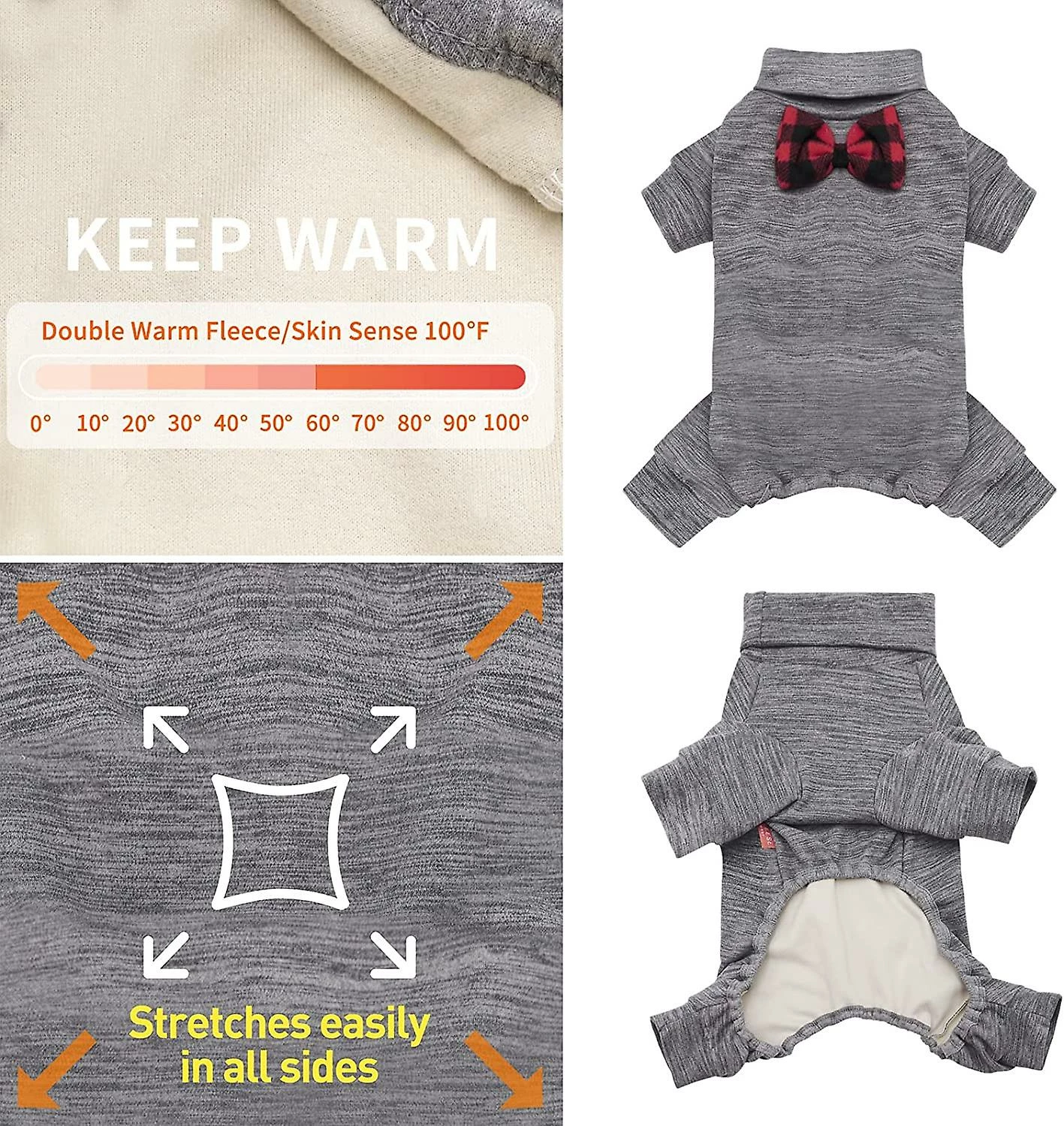 CUTE BOWTIE–KYEESE dog pjs is designed with a cute bowtie on the back. makes your dog warm yet cute. High cut on belly and elastic design makes hassle-free potty breaks.