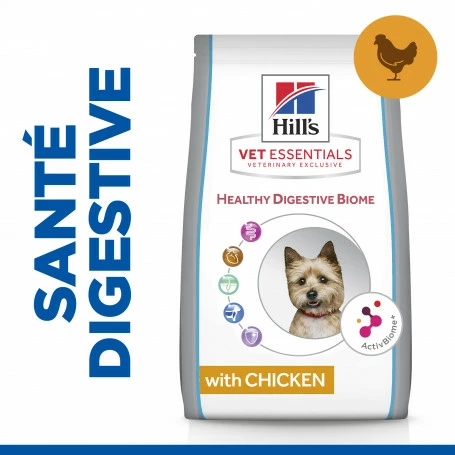 Une longueur d’avance pour une vie meilleure. La nourriture pour chiens Hill’s VET ESSENTIALS Healthy Digestive Biome avec la technologie ActivBiome+, est cliniquement prouvu00e9e pour favoriser une digestion saine en nourrissant uniquement les bonnes bactu00e9ries qui vivent dans l’intestin de votre chien, tout en favorisant la santu00e9 de son systu00e8me urinaire.