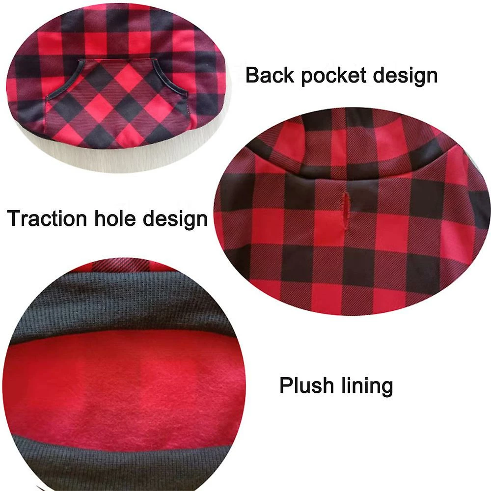Island Dog Hoodie Plus Velvet Black And Red Plaid Casual Medium And Large Dog Comfortable Warm Pet Clothing