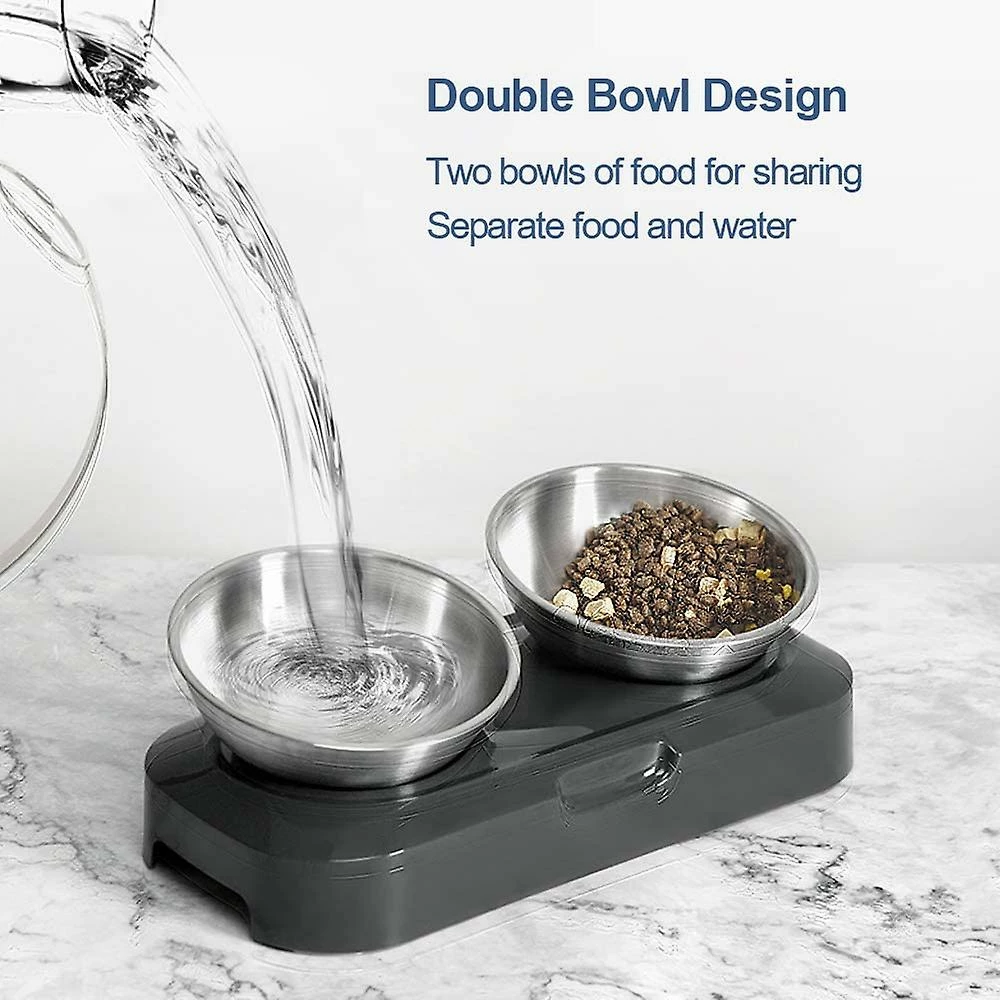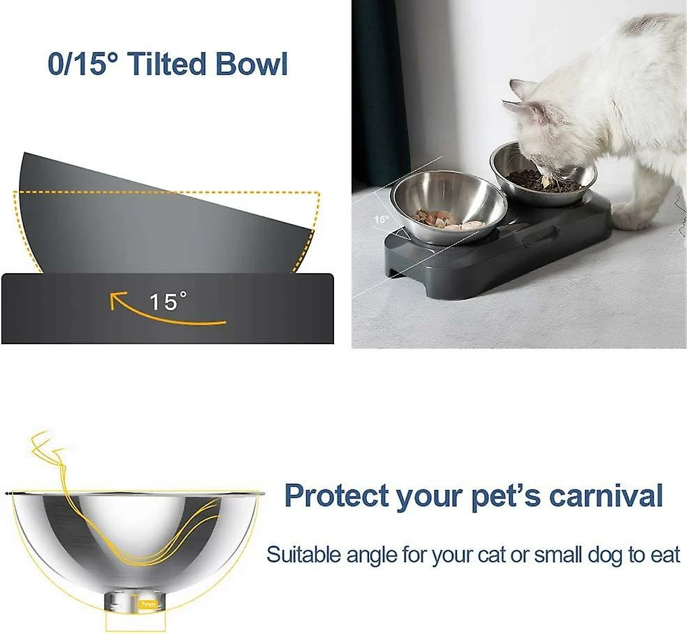 Ergonomic Design – 0/15 Tilted Adjustable Design Reduces The Stress Of Cats Leaning Bodies. Raised Bowls Makes It Easier To Swallow And Help Improve Digestion, Reduces Vomiting.$Non-Skid And Anti-Spill – Worried About Your Pets Making A Mess While Eating? Slightly Inclined Surface Of The Bowl Prevents Food Spilling And The Bottom Rubbers Make The Bowl More Stable.$Double Bowls Design – Two Bowls Design Can Procide Food And Water For One Pet, Also Allow You To Feed Two Pets At Same Time. The Deep And Wide Shape Can Prevent Whisker Fatigue, And Rounded Edges Make It Easier To Get Food.$Premium Stainless Steel Bowls – The Bowls Are Made Of Food Grade Stainless Steel With A High Quality Plastics Base. These Bowls Are Solid, Dishwasher Safe And Harmless To Pets.$Easy To Clean – The Raised Bowls Are Removable. Easily To Rinse Stains No Matter When Using The Dishwasher Or Hand-Washing. Your Stainless Steel Bowls Will Shine Again Soon