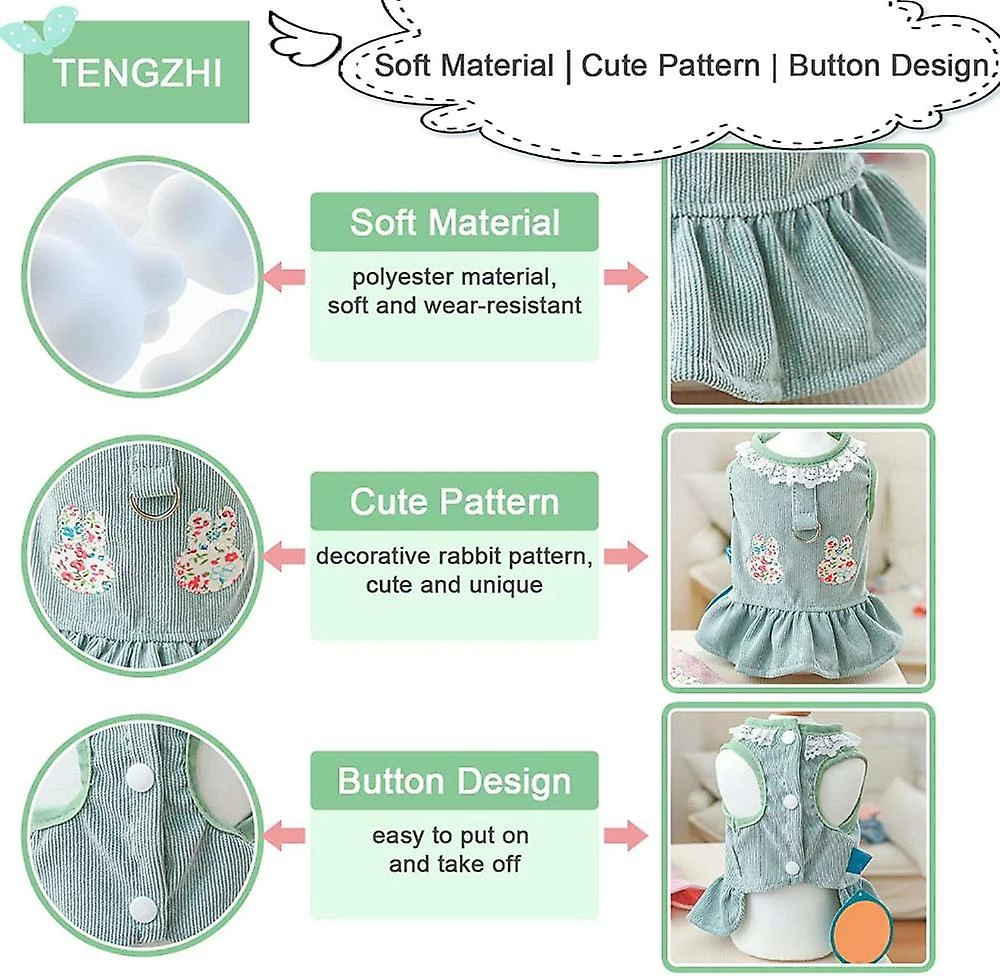 Cute PatternThe dog suspender dress has two cute bunny patterns sewn on the back, and the collar is matched with a circle of lace. Turn your pet into a cute little princess in seconds with this dress
