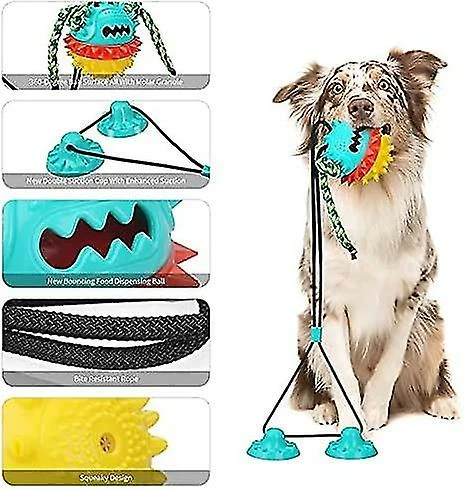 Dog toy with two powerful suction cups that resist larger pulling forces. Chew toy with suction cup can withstand up to 200 pounds of pulling force – Even a smelly dog can chew, bite and tug war.