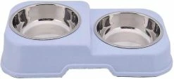 Material Our products are made of environmentally friendly plastic + stainless steel, free of harmful carcinogens, odorless and can ensure your dog’s safety. Durable and not easy to break, cold resistant and heat, environmentally friendly and safe. Double bowl design Double bowl design doesn’t need to mix the position of water and food or snacks, one for food and one for water. Wide range of applications adapted to your dogs, cats, puppies and kittens, very well suited for coarse dry food, wet food, snacks or water. Non-slip Non-slip bottom. The bottom is non-slip, increasing friction with the floor, also prevents the bowls from slipping and scratching the floor. For small, medium and large dogs, cats and puppies. Easy to clean The bowls are removable, easy to remove for washing and keeping clean, and for adding food or water, and it can also be washed in the dishwasher, which is very convenient for you. Reasonable Size Bowl bottom length 34.5cm, bowl bottom width 19.5cm, bowl high 7cm. The larger opening is ideal for keeping pets. Candy color cat bottom basin design can add better pleasure in feeding your pet. Color: Blue