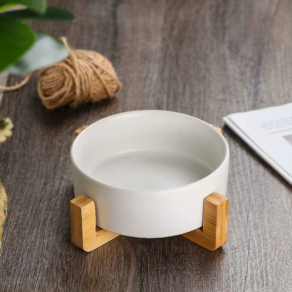 Sl Chang White Pet Dog And Cat Bowls Ceramic Dog Cat Bowls Bamboo Holder – Lave-vaisselle Et Facile à Nettoyer