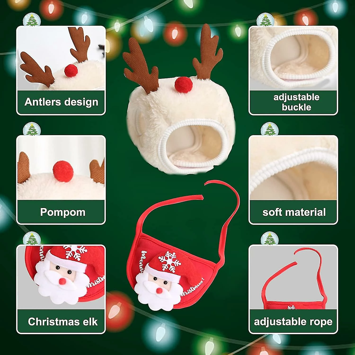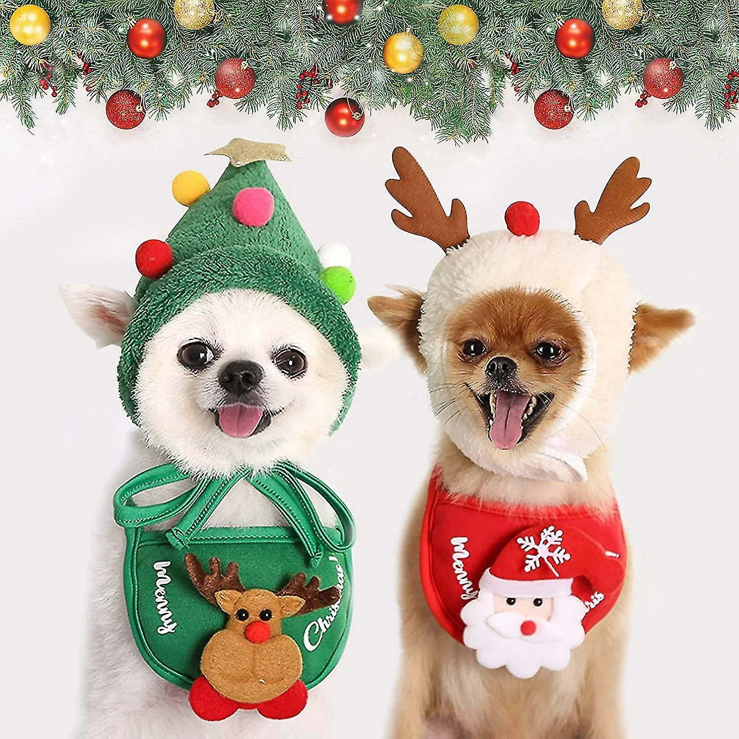 Unbranded 2pcs Noël Pet Hat Bib Set Dog Clothing Puppy Cat Cosplay Costume Accessoires