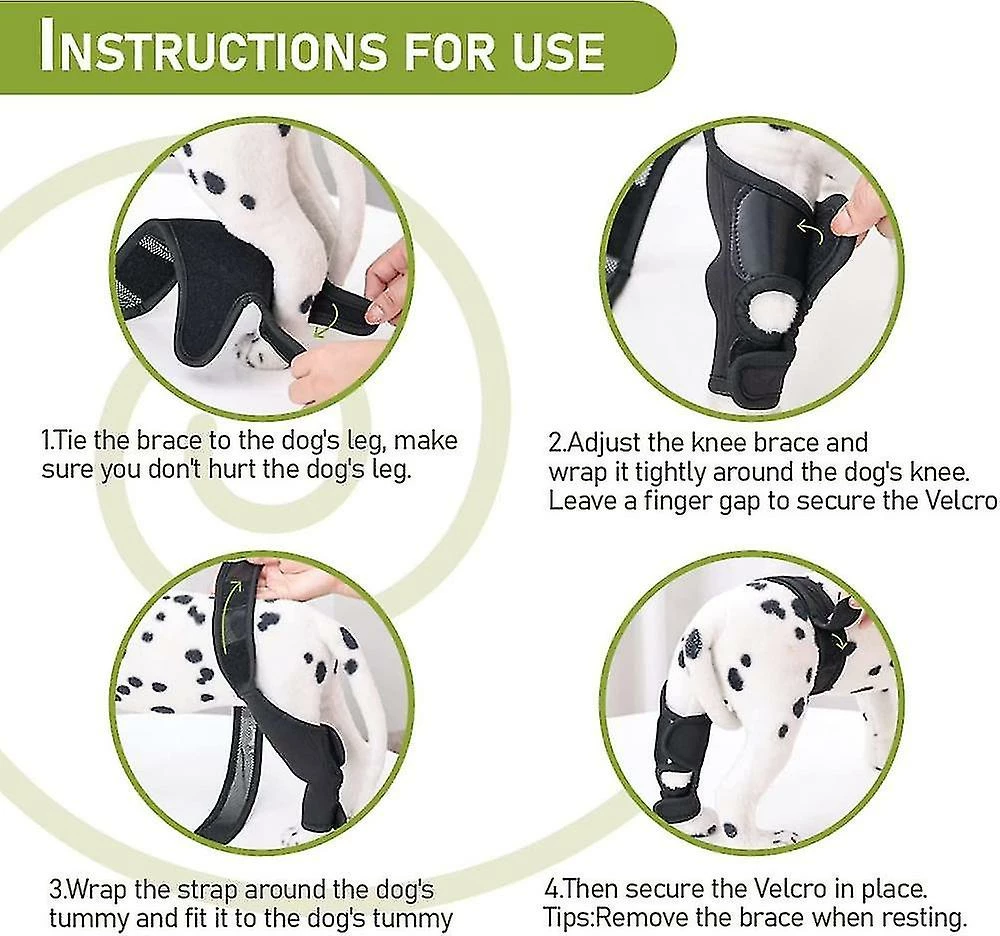 Easy to Wear Dog Knee Brace, Please refer to the size chart to measure and choose the correct size for your dog before placing your order.Please wear correctly under the guidance of your veterinarian.When installing the Velcro, please press hard on both ends of the paste to increase the stickiness and ensure that the Velcro does not fall off easily.