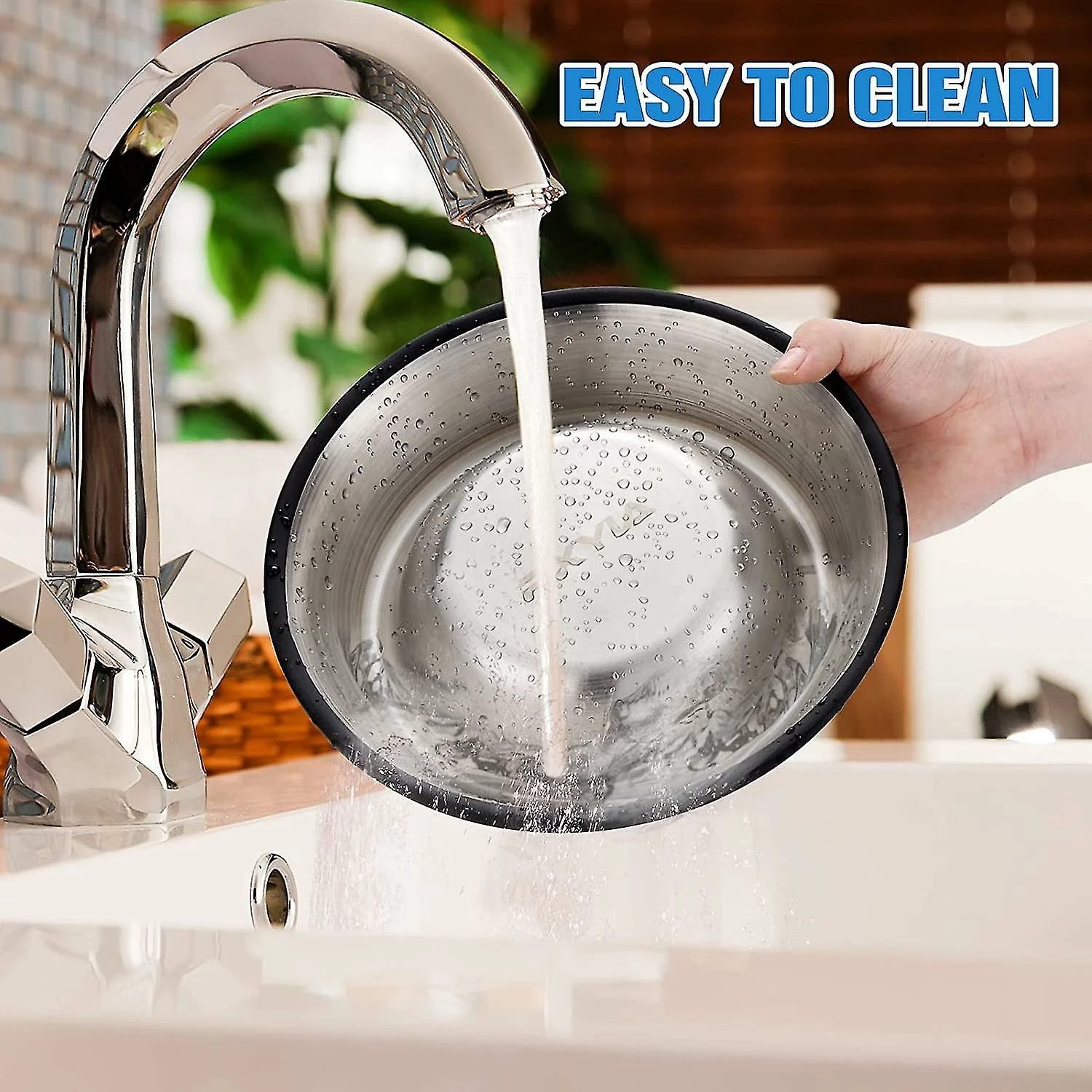 This dog bowl is made of Stainless steel material, polished to a mirror sheen, rubber base can reduce noise and skiddingDishwasher-safe compatible with easy cleaning, rubber base can be removed and put on.Flat bottom design can stop pets to tip the bowl over, rubber base can protect the hardwood floor from scratch.Colour:Silver+blackMaterial:Stainless steelSize:Bottom diameter 30CMPackage Contents:2 * Dog BowlOnly the above package content, other products are not included.Note: Light shooting and different displays may cause the color of the item in the picture a little different from the real thing. The measurement allowed error is +/- 1-3cm.