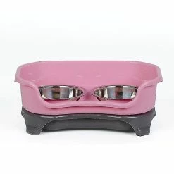 Dog bowl cat bowl pet cat double basin splash-proof bowl(Pink)