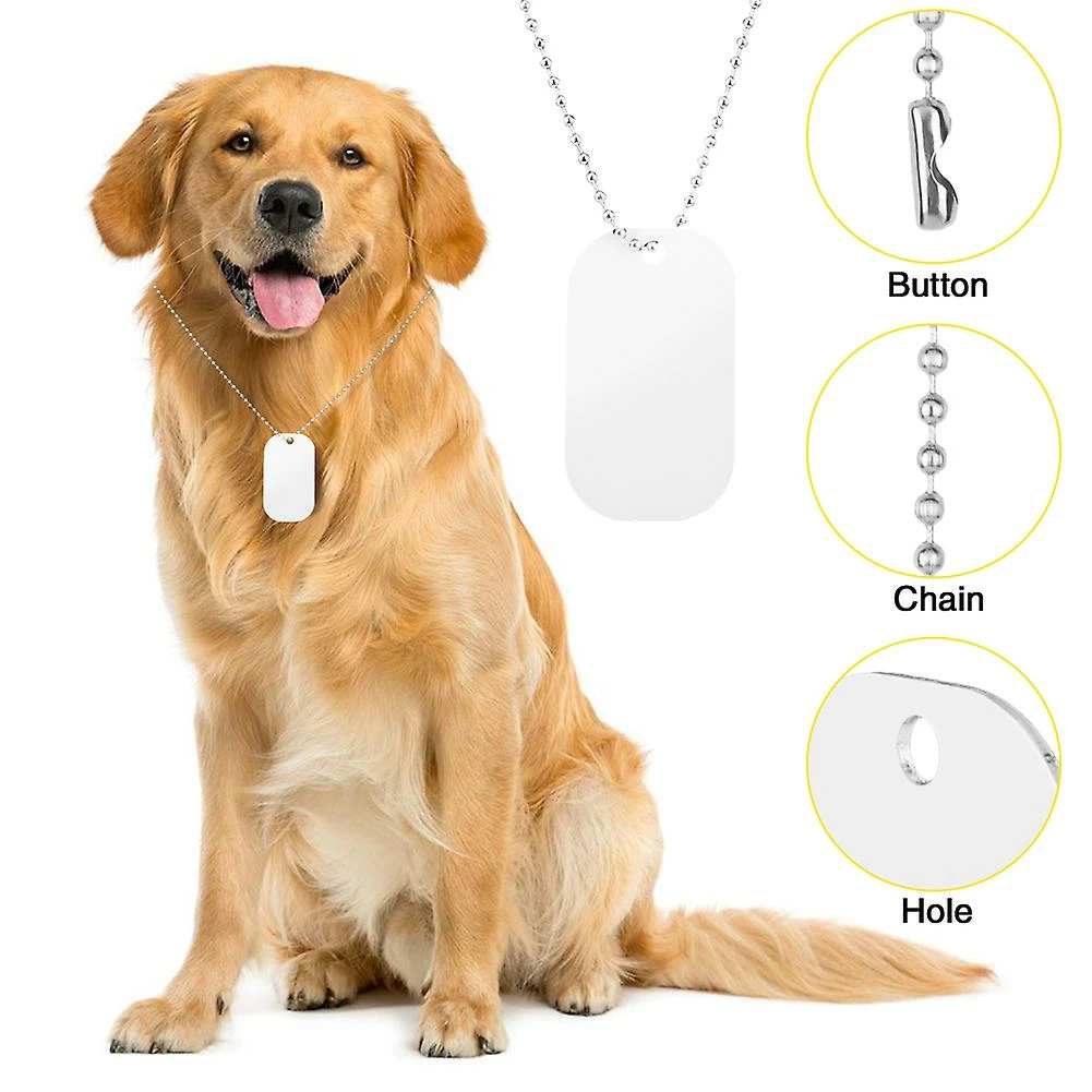 Unbranded ID Label Dog Tag Set Pendentifs En Aluminium 23.6inch Chain White Sublimation Blank