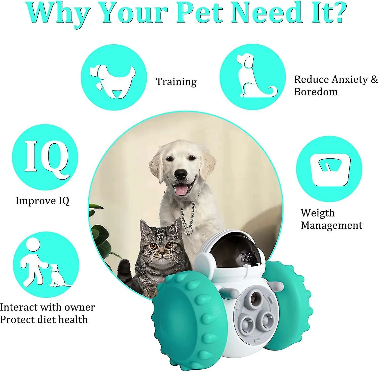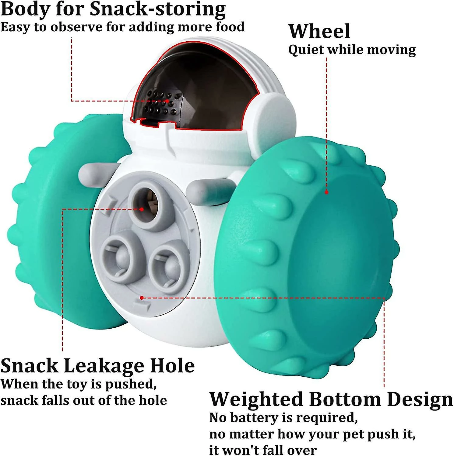 [Multifunctional Pet Toy] Remove the soft stopper on the top and add pet food or snacks directly. Pets can turn this product with light force.snacks will drop from the leaking hole to attract pets’ interest in playing.