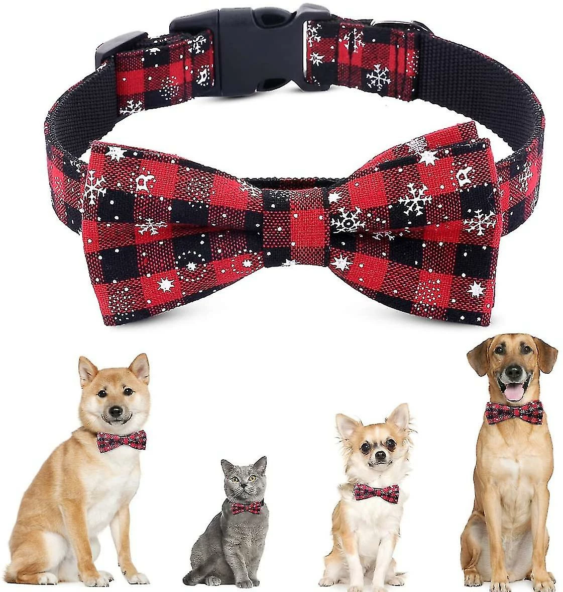 Christmas collar dog cat collar: get into the holiday spirit with these classic plaid style Christmas patterns, are an excellent Christmas gift for your pets. Its design is very suitable for Christmas mood, dogs and cats will love it. Christmas gift fordogs and cats.
