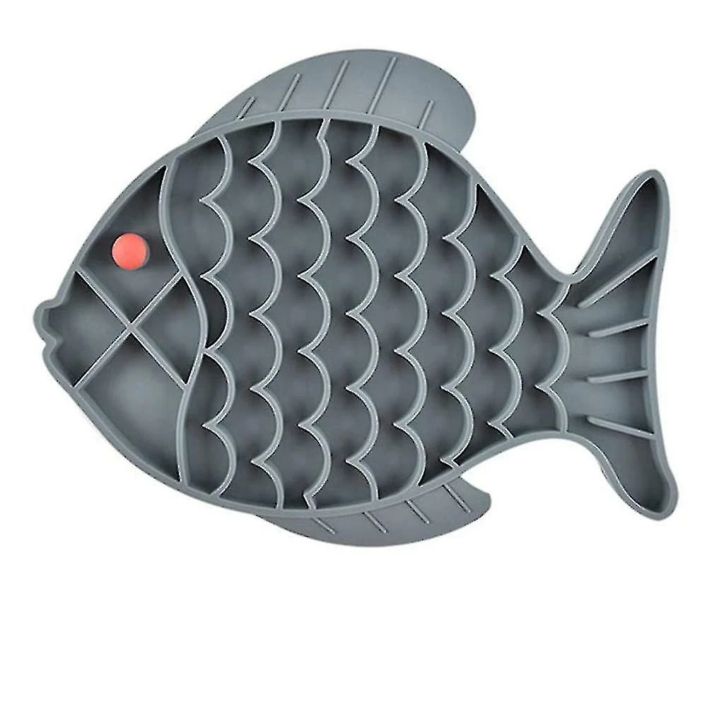 Product descriptionMaterial: SiliconeSize: 24.5*19*0.8cmColor: blue, green, grayShape: FishProduct application: universal for cats and dogsPackage content: 1*dog silicone slow food pad1.Lick Mat for DogsThe bumps on the licking mat surface design, can prevent food from spreading, It Keeps Your Pet Happily Engaged as They Lick Peanut Butter, Pumpkin Puree, and Other Natural, Organic and Healthy Pet Approved Treat From the Slow Feeder Lick Mat.2.SLOWER HEALTHIER FEEDING: Our Slow Feeder Dog Mat is also ideal for dry food to encourages slower eating, which reduces bloating and improves digestion.3.Premium MaterialsOur dog lick mat made from 100% Food Grade Silicone, BPA free, no smell or taste, durable, strong flexibility, never deformed.4.Easy to Use and CleanFood grade silicone does not absorb water and easy to handle, just use soapy water or dishwasher to wash it off.5.NON-SKIDDING DESIGN This slow feeder licking mat for dog cat lying on the ground has strong suction. Its hard to lift it from the middle position, but it is easily from the edge. The slow feeder lick pad wont run around at home anymore