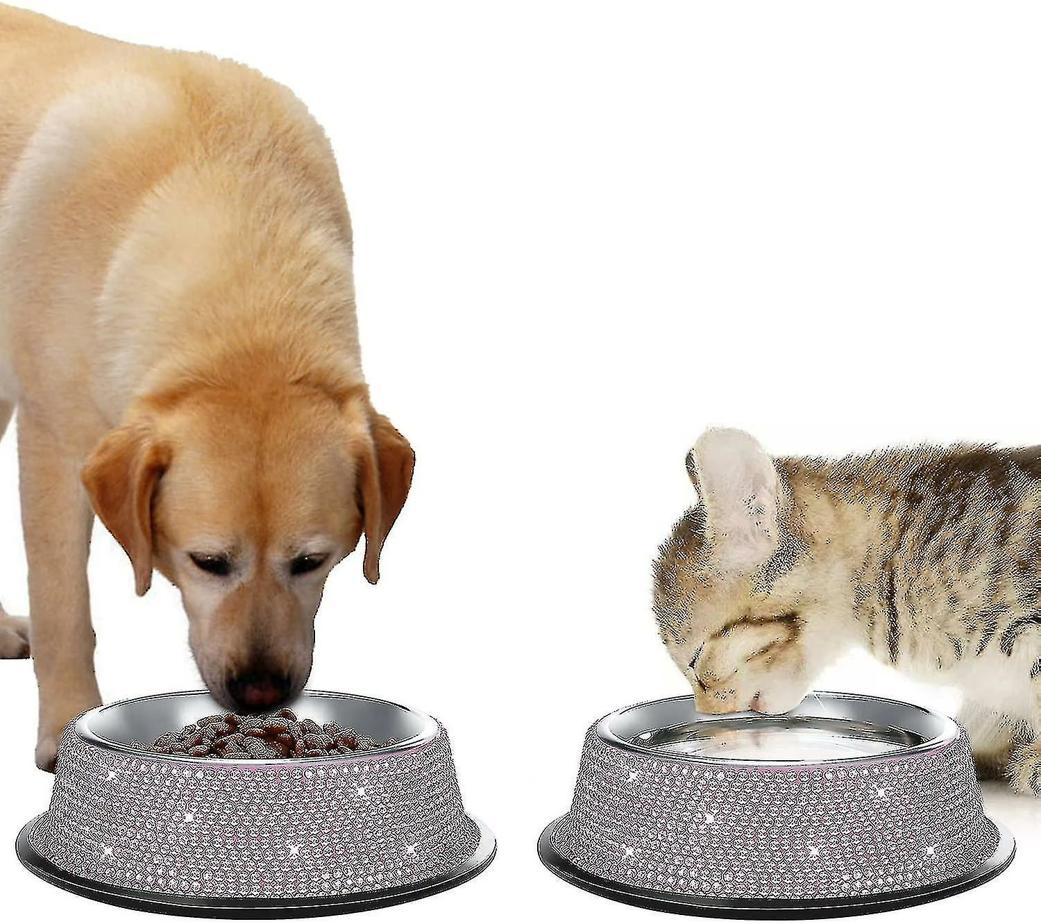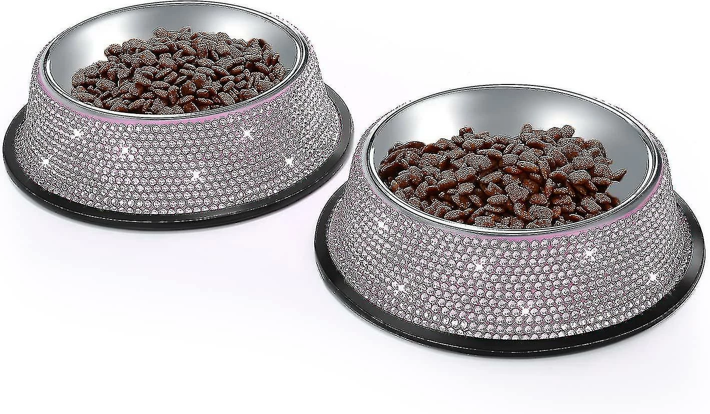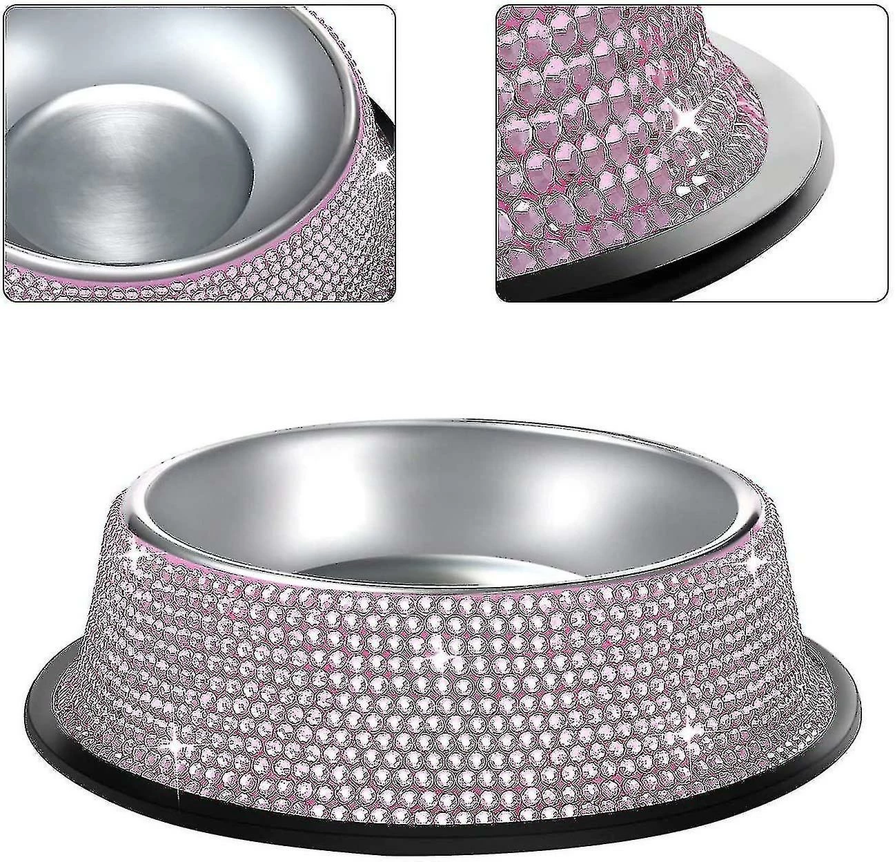 Unbranded Shiny Rhinest Moins D’acier Pet Bowl Dog Cat Dog Erless Steel Pet Bowl, Single Bowl Rhinest Moins D’acier