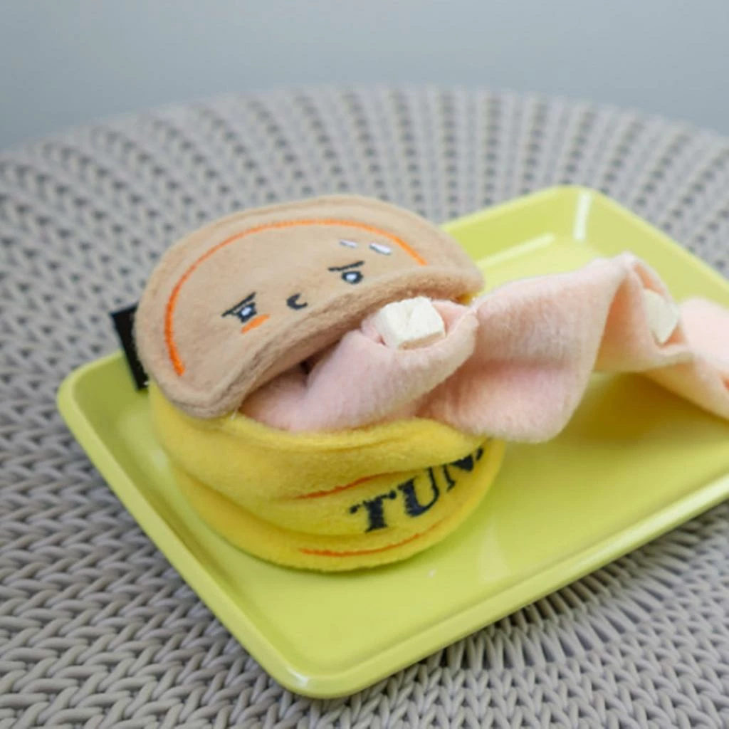 Dog Plush Toy: The interactive hide and seek plush toy set in tuna can design, which are great gift for your pet.
