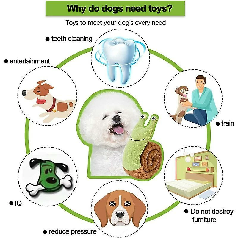 Reduce stress and anxiety: This is a cute decompression toy that looks like a snail. The snail toy has a screaming device built into the body. When your dog presses it, it makes fun sounds to get your pup excited. Every dog loves sounds that fill them with energy and can help dogs relieve stress.