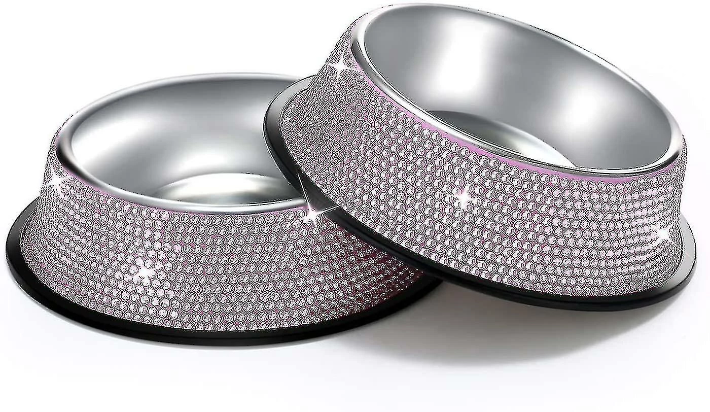 Unbranded Strass Brillant En Acier Inoxydable Pet Bowl Dog Cat Feeder, 640ml-rose