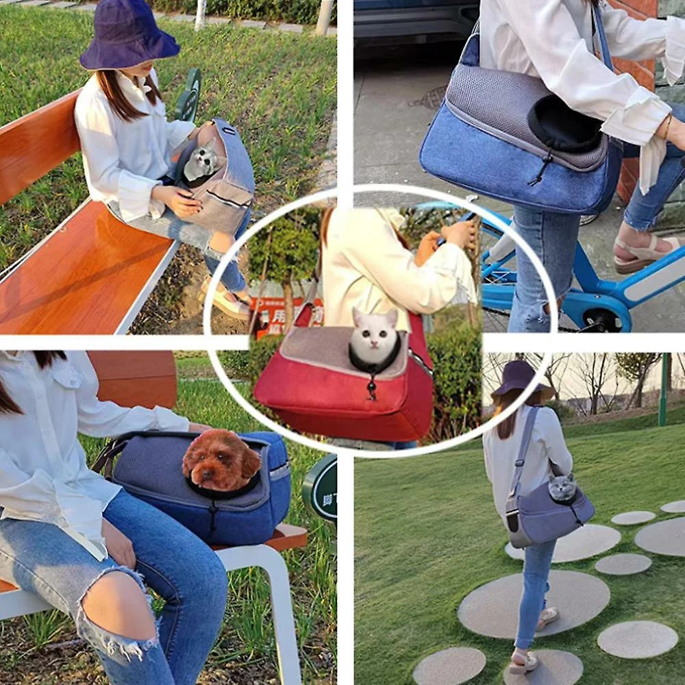 Unbranded Sysy Dog Cat One Shoulder Crossbody Pet Bag Breathable Mesh Travel Portable Cat Bag Coffee